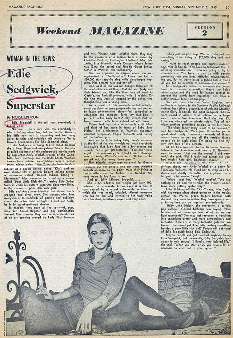 SEPTEMBER 5, 1965: "EDIE SEDGWICK, SUPERSTAR"