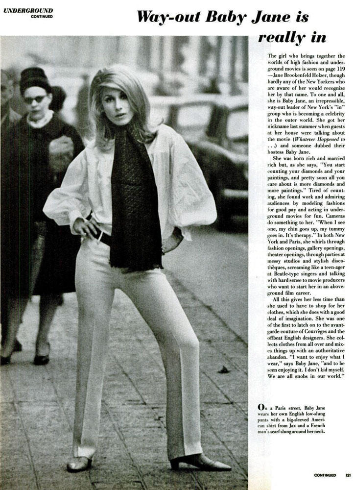 The last two pages were completely devoted to Baby Jane Holzer under the heading, "Way Out Baby Jane is really in."
