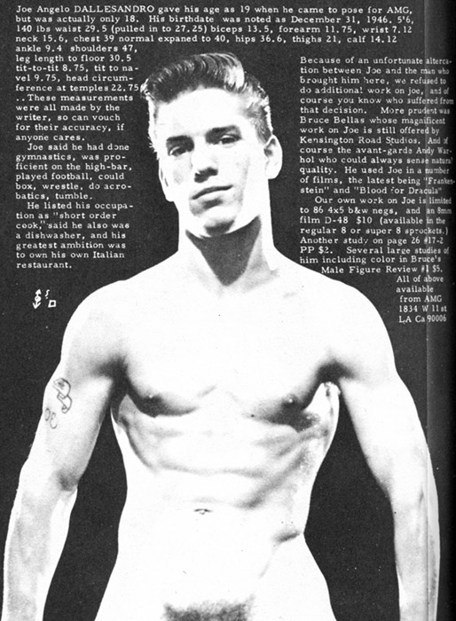 Joe's picture was last included in the magazine in 1975. On his page, it notes that Andy Warhol "used Joe in a number of films, the latest being Frankenstein and Blood for Dracula.