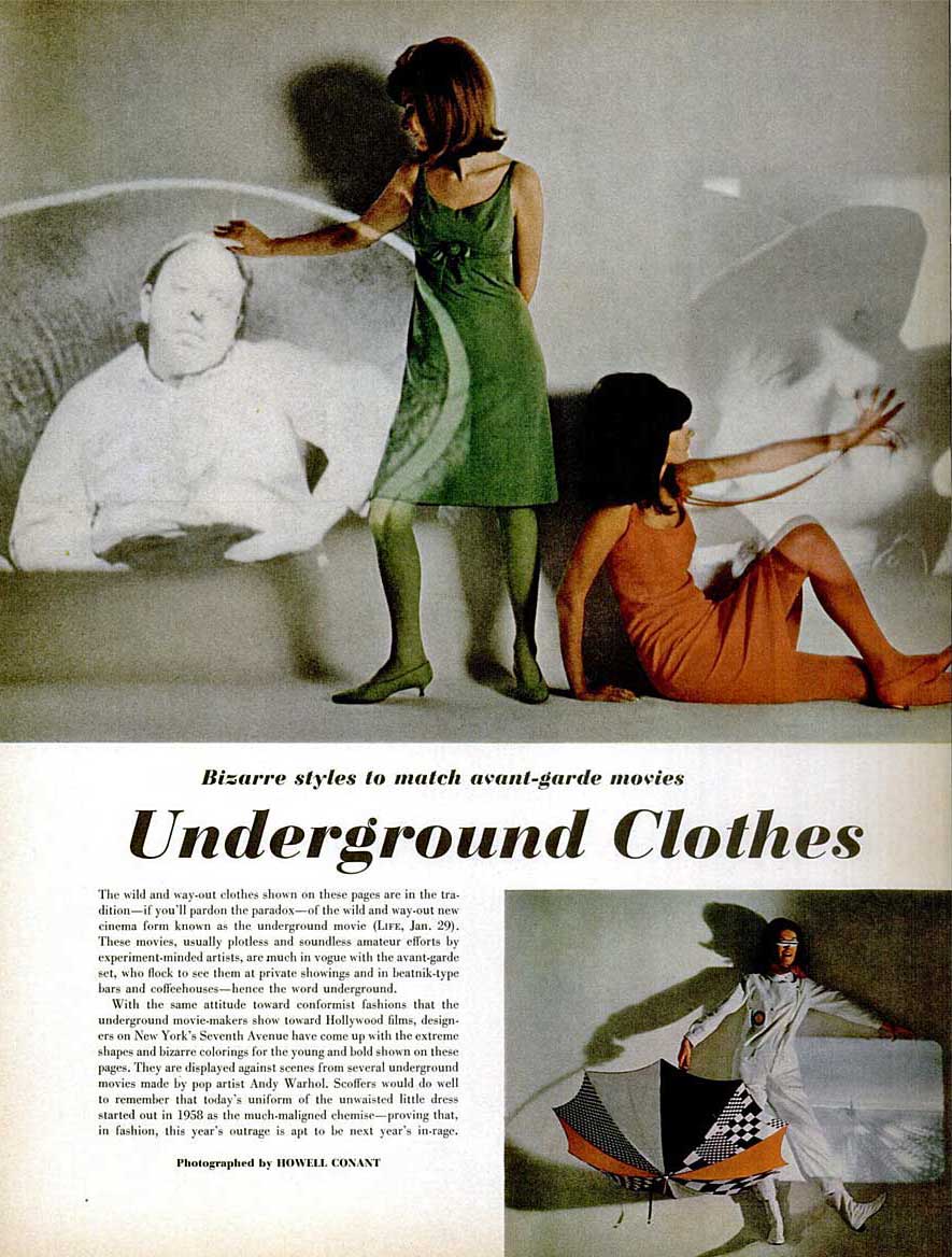MARCH 19, 1965: WARHOL STARS MODEL UNDERGROUND CLOTHES IN LIFE MAGAZINE.