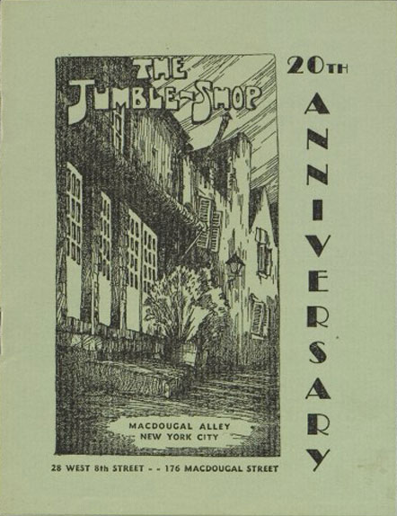 From the beginning we were fortunate in the persons who were attract to the Jumble Shop... A page from the Guest Book which we should have kept but did not would have contaained even in the early days such distinguished names as Daniel Chester Frenc, whose Seated Lincoln is the focal point of the Lincoln Memorial in Washington, Jules Bok, immortalized in teh Bok Singing Tower, Dudly Digges, Theodore Dreiser, Martha Graham, William Glackens, Rudulph Evan, who wears the ribbon of the Legion of Honor of France, Deems Taylor, Hunt Deidrich, Margaret Wycherley, Harold Dietz, Tom Powers, Heinrich Von Loon, George Copeland, Henri Deering... ("The Jumble Shop: 20th anniversary, 1942," Archives of American Art)