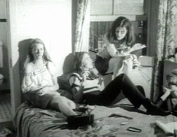 Angelina "Pepper" Davis (L) in The Chelsea Girls with Mary Woronov, International Velvet and Ingrid Superstar (kneeling)