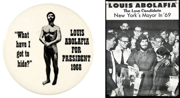 Campaign material for the "reverend" Louis Abolafia who performed Jackie Curtis' "marriage" ceremony