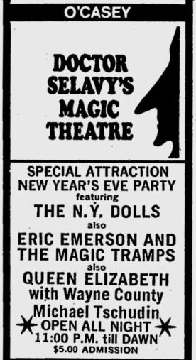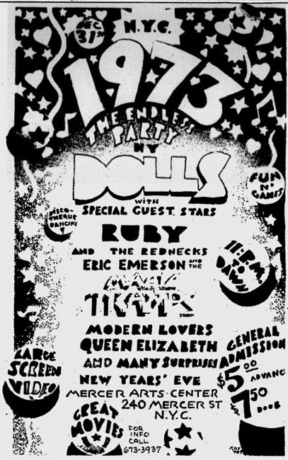 At the end of the year "Eric Emerson and The Magic Tramps" played at a New Year's party at the Mercer. They were billed third, after the headlining act, the New York Dolls, and Ruby Lynn Reyner's band, Ruby and the Red Necks: