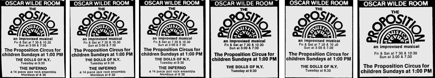 Village Voice ads (1972) L to R: June 15, June 22, June 29, July 6, July 13 and July 20 (when the Dolls are no longer playing)