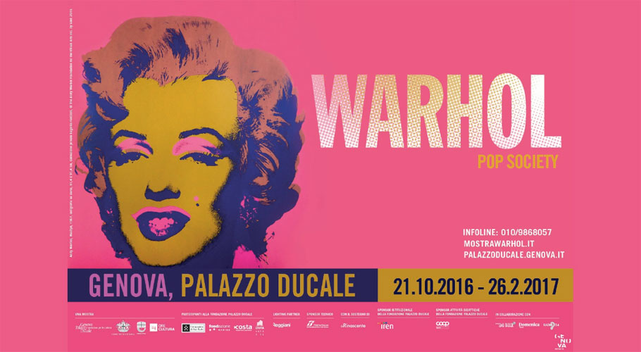 August 29, 2016: "Warhol Pop Society" opens at the Palazo Ducale in Genova (Genoa) on October 21, 2016 and runs until February 26, 2017. Curated by Luca Beatrice, the exhibition is divided into six sections: Design, Icons, Polaroids, Portraits, Film, and Andy Warhol and Italy. Details here.