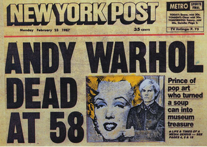 2. "Prince of Boredom: The Reflections and Passivities of Andy Warhol." Art and Artists 2 #12 (March 1968). Reprinted: S. H. Madoff (ed.) (1997) Pop Art.California: University of CaliforniaPress. [the dreadful title was not mine, and belongs with a destructive misunderstanding of Warhol]