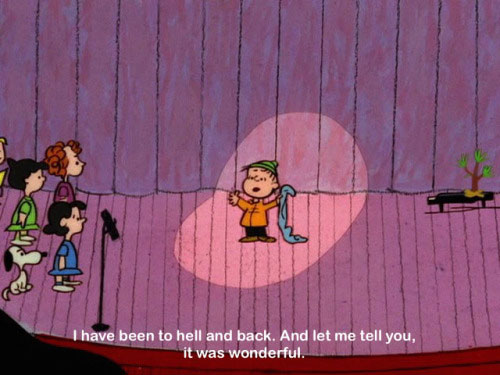 And then another email with the words "my stage for 2016" and a Charlie Brown cartoon attached: